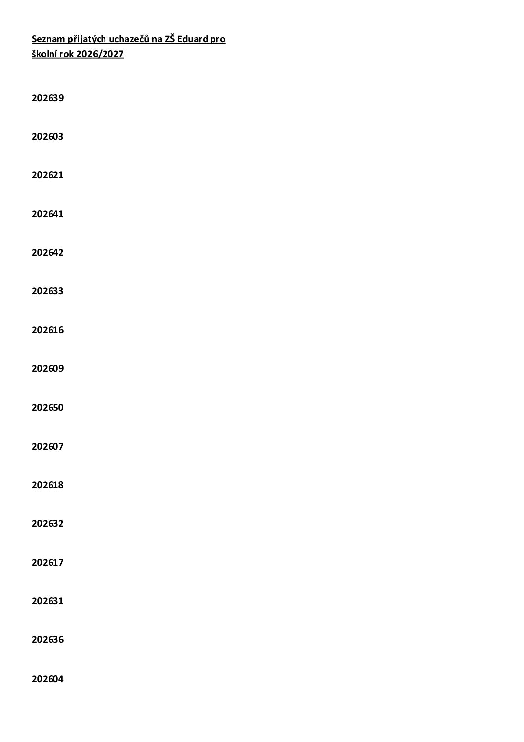 - Doručení Žádosti o přijetí k plnění povinné školní docházky do Základní školy Eduard pro rok 2026/2027 je možné pouze těmito způsoby: