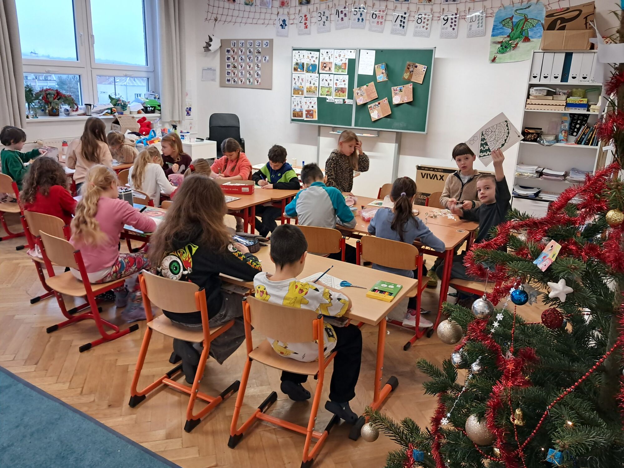 Poslední školní den roku patřil třídním vánočním oslavám. Děti si předaly drobné dárky, zazpívaly koledy a společně si užily chvíle klidu mimo běžný školní rytmus. Nechybělo sdílení zážitků z uplynulého roku, poděkování ani malé třídní tradice, které si každá skupina buduje po svém.